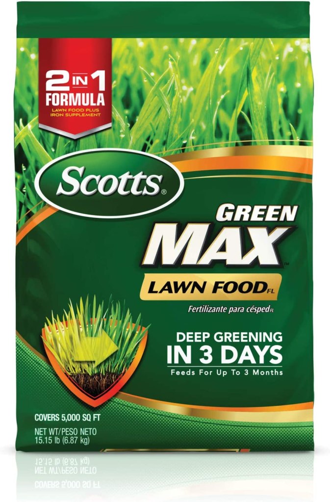 Nourish your Florida lawn with Scotts Green Max Lawn Food. This 15.15 lb. bag covers 5,000 sq. ft. and provides 3 months of feeding. Witness deep greening in just 3 days, regardless of grass type or season. Achieve a lush and vibrant lawn effortlessly.