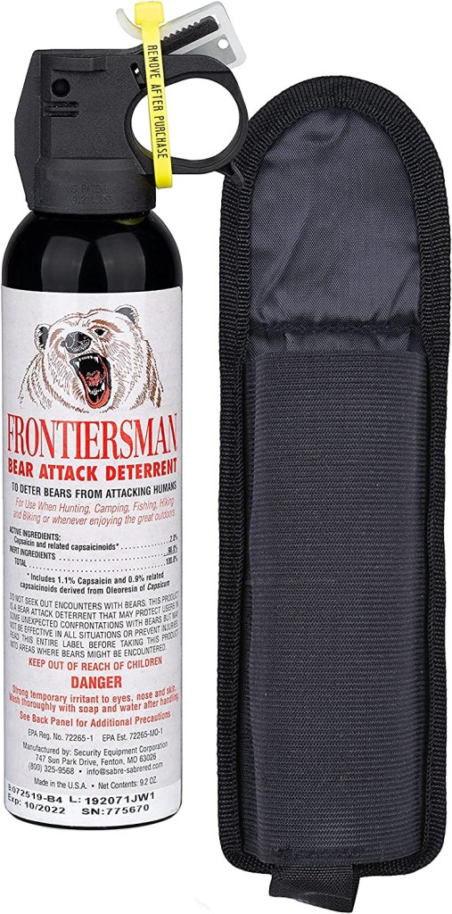 SABRE Frontiersman 9.2 oz. Bear Spray, Maximum Strength 2.0% Major Capsaicinoids, Powerful 35 ft. Range Bear Deterrent, Outdoor Camping & Hiking Protection, Quick Draw Holster & Multipack Options