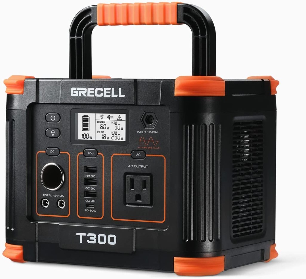 Power your outdoor adventures with the Portable Power Station 300W by GRECELL, featuring a 288Wh lithium battery and multiple output options.