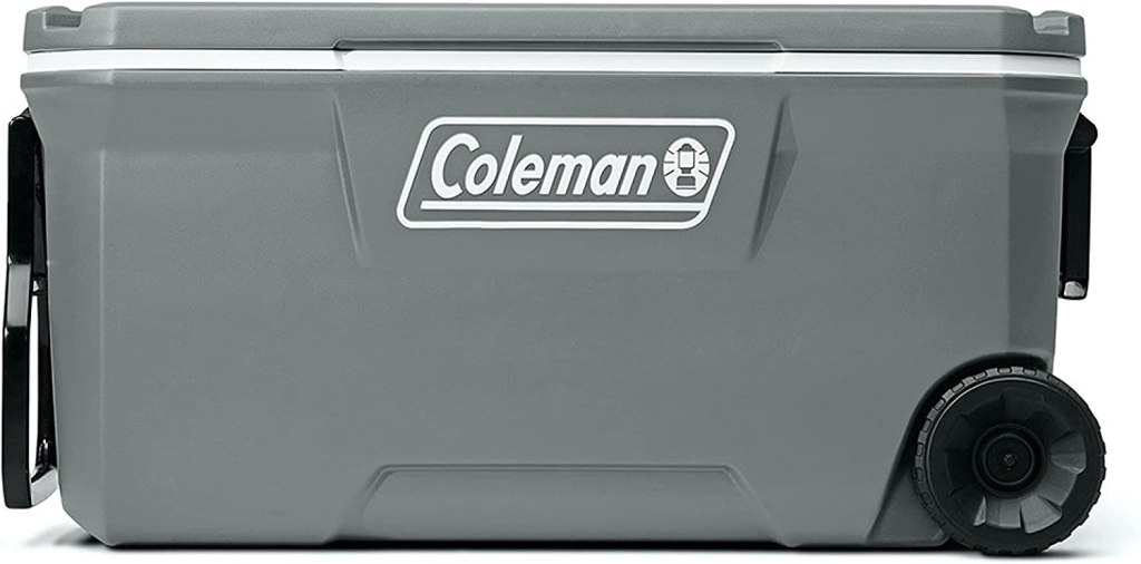 Keep your drinks cool with the Coleman Rolling Cooler, featuring wheels and a 5-day ice retention capability.