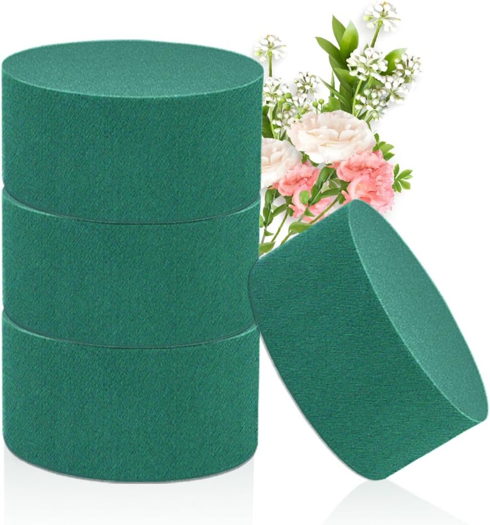 4Pcs Floral Foam Round 3.2″ Green Wet Dry Flower Foam Blocks Florist Plant Foam for Artificial and Fresh Flower Arrangement