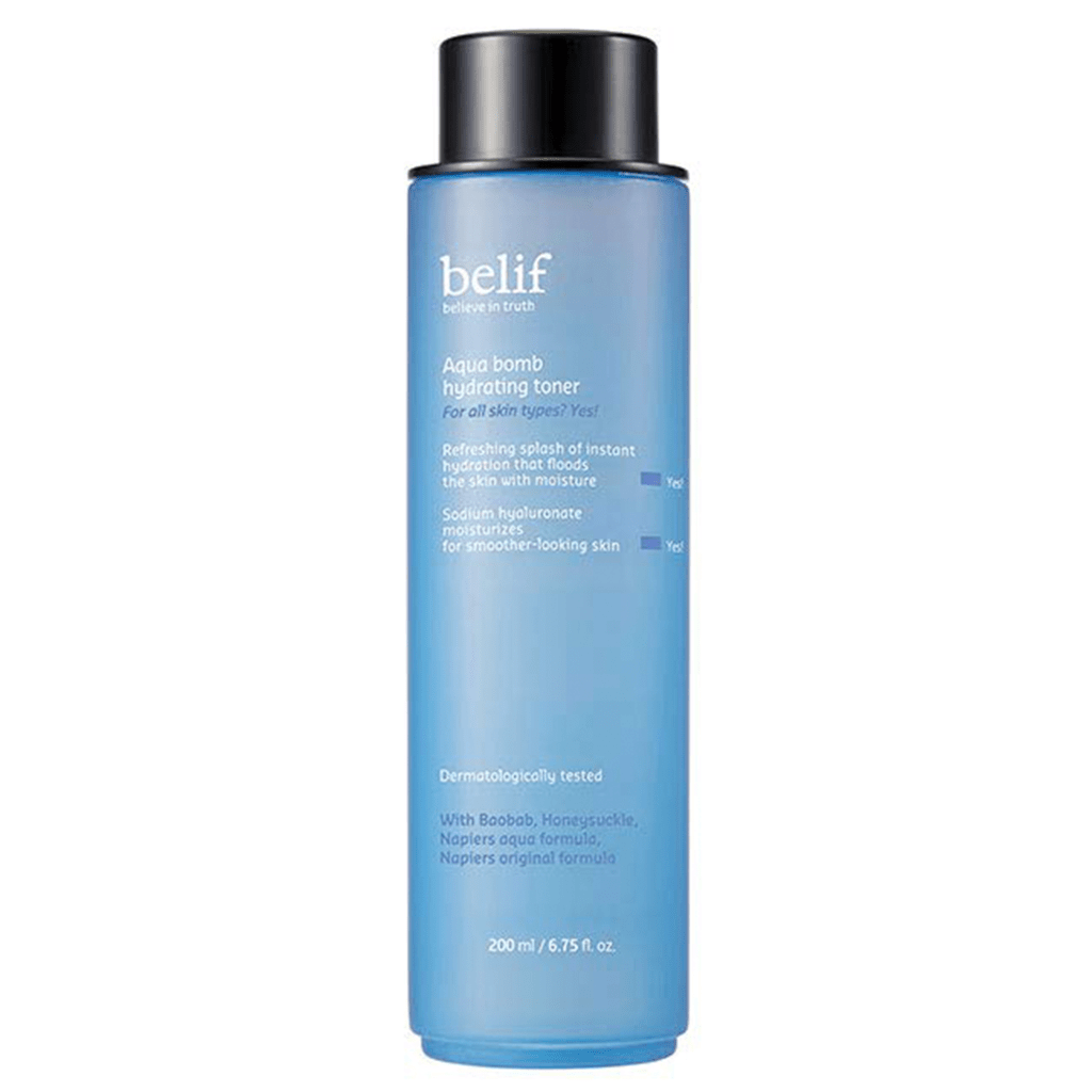 Beilf’s Aqua Bomb Hydrating Toner is enriched with natural hyaluronic acid, antioxidants, and botanical extracts. This daily skincare essential provides deep hydration and moisture, leaving your skin glowing and moisturized.