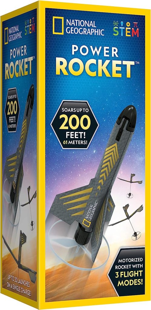 NATIONAL GEOGRAPHIC Rocket Launcher for Kids – Patent-Pending Motorized Air Rocket Toy, Launch up to 200 ft. with Safe Landing, Kids Outdoor Toys & Model Rockets, Gifts for Boys and Girls, Space Toys