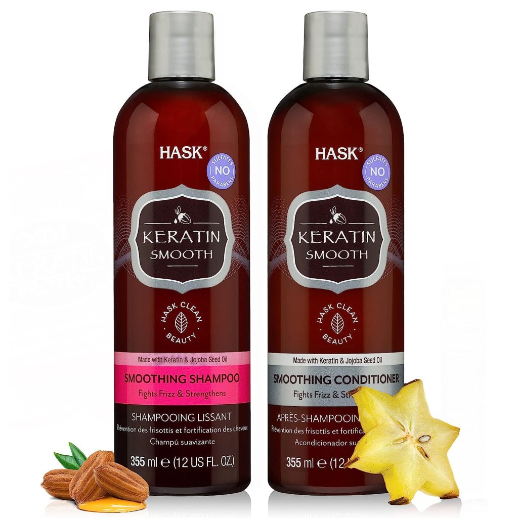 Suitable for all hair types, this set enhances hair health with Keratin protein while being gluten-free, sulfate-free, and cruelty-free.