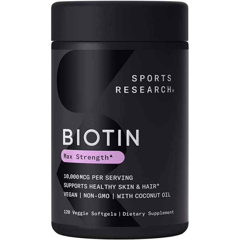 Sports Research Vegan Biotin 10,000mcg with Coconut Oil – Max Strength Biotin Vitamin B7 for Healthier Hair & Skin and Keratin Support – Non-GMO & Gluten Free, 120 Softgels (4 Month Supply)