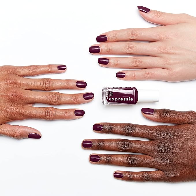 For a bold winter look, Essie expressie’s ‘Not So Low-key’ in deep burgundy is a fast-drying, vegan-friendly choice.