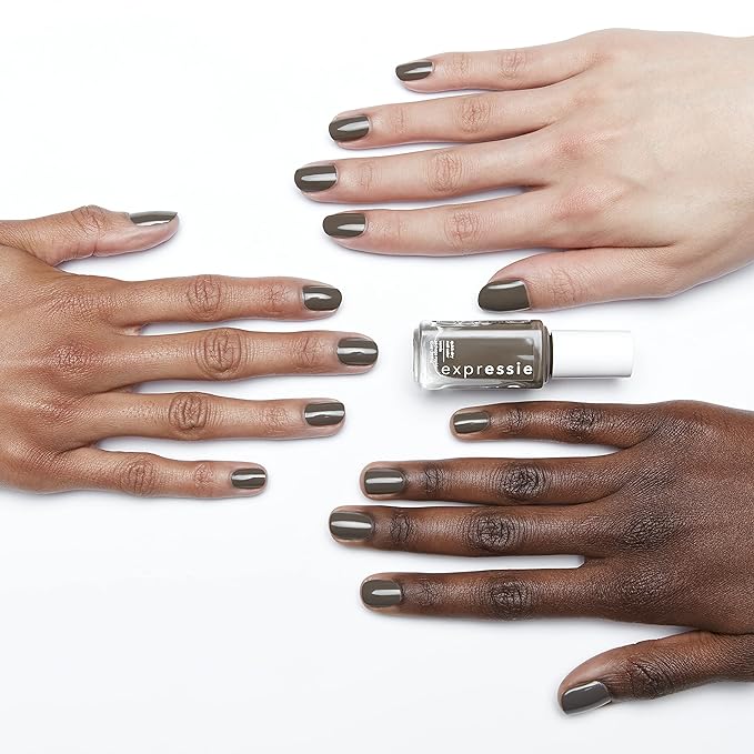 essie expressie Quick-Dry Vegan Nail Polish, No Time For Local, Muted Gray, 0.33 Ounce