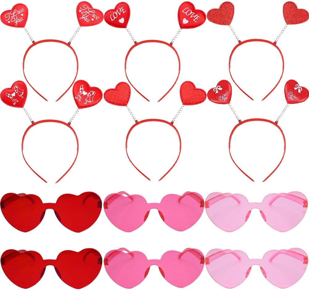 12-piece set of heart-shaped headbands and sunglasses for Valentine’s Day and party accessories.