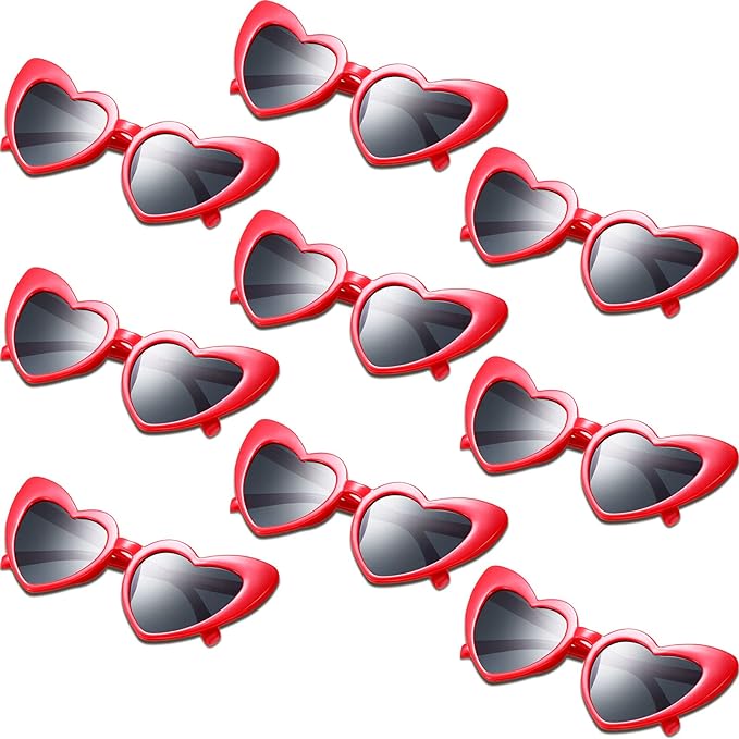 Nine pairs of vintage, heart-shaped sunglasses, perfect for parties, shopping, and traveling.