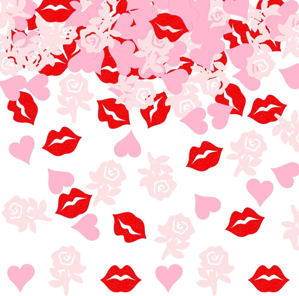 300 pieces of mixed confetti with lips, hearts, and roses for Valentine’s and Mother’s Day decor.