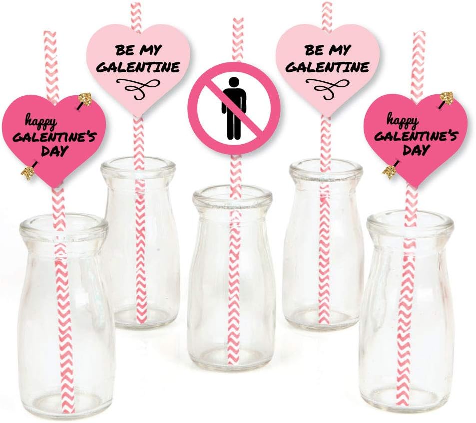 Big Dot of Happiness Be My Galentine – Paper Straw Decor – Galentine’s and Valentine’s Day Party Striped Decorative Straws – Set of 24