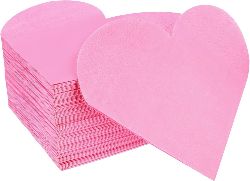 Valentine-themed heart-shaped paper napkins for events like weddings, parties, and dinners.