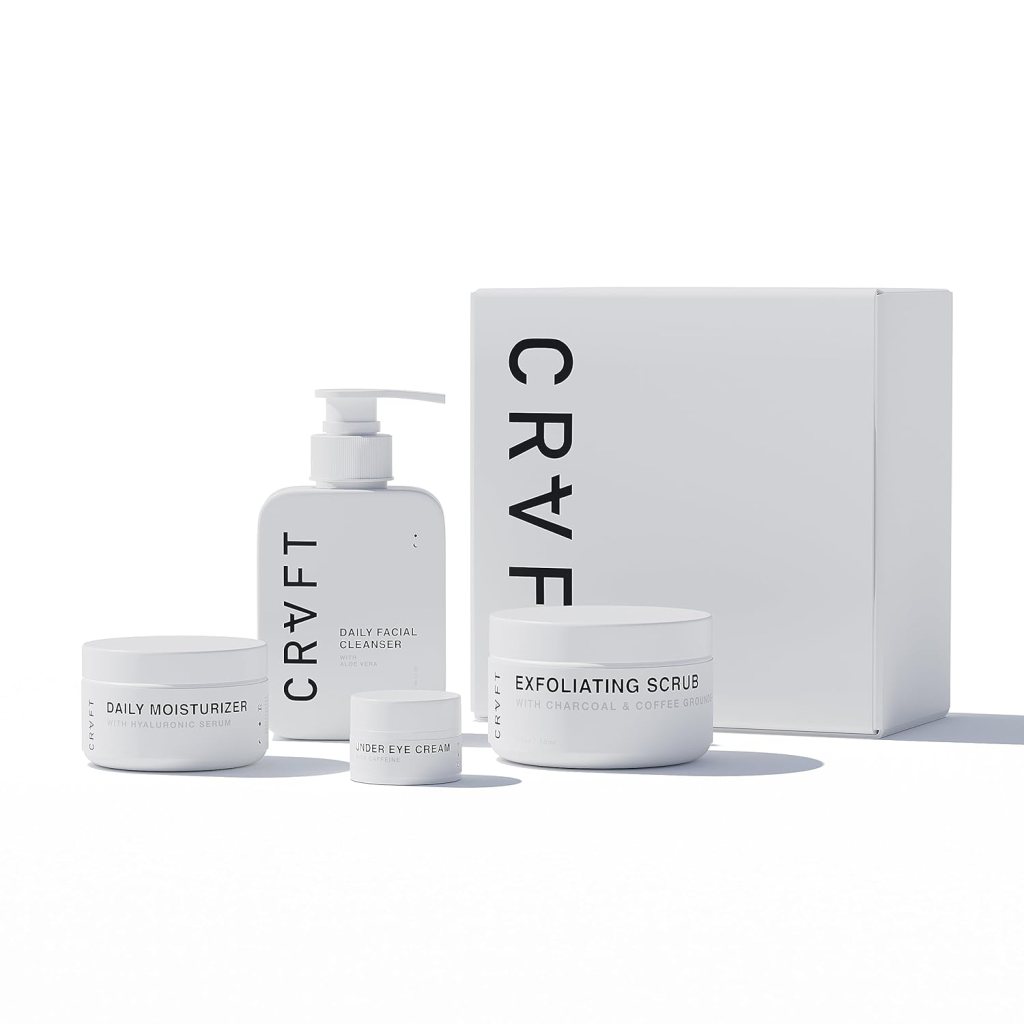 CRVFT Men’s Facial Care Kit | Aloe Vera Face Wash 3oz | Hyaluronic Moisturizer 1oz | Charcoal Exfoliating Scrub 1.7oz | Men’s Under Eye Cream 0.25oz | 4 Piece Complete Daily Skin Care System [Scented]