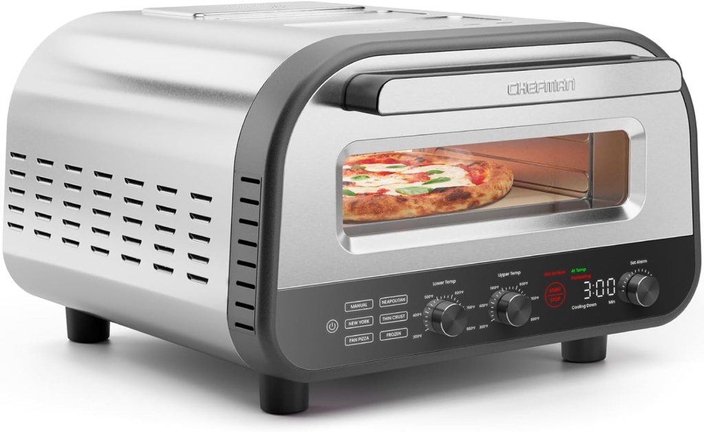 CHEFMAN Indoor Pizza Oven – Makes 12 Inch Pizzas in Minutes, Heats up to 800°F – Countertop Electric Pizza Maker with 5 Touchscreen Presets, Pizza Stone and Peel Included – Stainless Steel